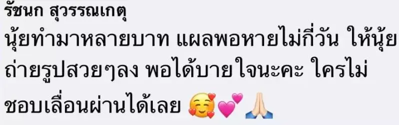 มาถึงวันนี้แผลเริ่มหายดี เจ้าตัวก็โพสต์รูปทางโซเชียลของตัวเอง เพื่ออัปเดตความปังให้เหล่าแฟนคลับได้เห็นถึงความเปลี่ยนแปลง งานนี้นอกจากจะมีแฟนๆเข้ามาคอมเมนต์ชมว่าดูสวยขึ้นกว่าเมื่อก่อนแล้ว ไม่วายมีดราม่าจนได้