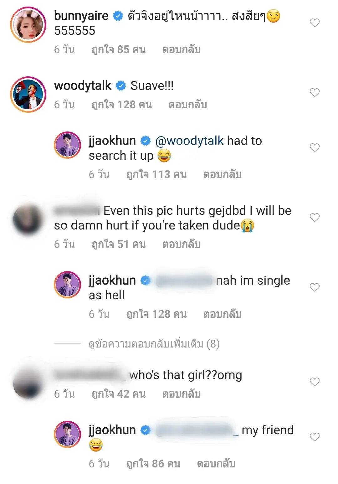 ยังไงเจ้าตัวก็เขียนแคปชั่นแล้วเนาะว่า เพื่อนๆๆๆๆ รัวๆขนาดนี้ ไม่ได้ร้อนตัวอะไรหรอก สาวๆก็ใจชื้นขึ้นมาหน่อย มาตามลุ้นกันต่อไปละกันเนาะ ว่าใครจะมาครองใจของเจ้าขุนต่อจากสาวเจสซี่กันนะ