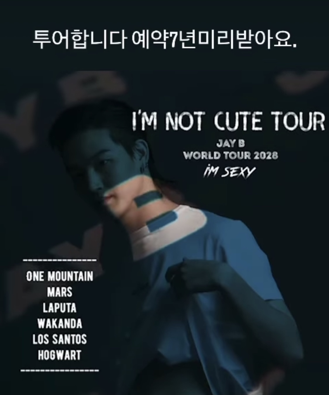 หลังจากที่บรรดานกน้อยกินแกงหม้อใหญ่ที่หนุ่มแบมแบมเสิร์ฟกันไปในช่วงเช้าจนอิ่ม มาช่วงเย็นก็เจอหนุ่มเจบีคนชิคจัดหนักจัดเต็มกันอีกยก กับคอนเสิร์ตเดี่ยวสุดยิ่งใหญ่ที่ใช้ชื่อว่า I’M NOT CUTE TOUR JAY B WORLD TOUR 2028 แค่ชื่อก็บอกเลยว่าบ่งบอกตัวตนของเจ้าตัวสุดๆ แถมปีที่จัดก็ยังทำเอาแฟนๆ ถึงกับปาดเหงื่อเลยทีเดียว