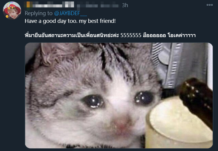 ผ่านไปยังไม่ถึงวัน หนุ่มเจบีก็ได้ทวีตข้อความให้กำลังใจอย่างอบอุ่นน่ารักว่า “Have a good day. best friends” แรกๆ ก็ดูจะเขินดีอยู่หรอก แต่พออ่านๆ ไปจนจบ ก็ทำเอาน้องนกถึงกับสะดุดกึก ส่ายหัวปฏิเสธกันเป็นแถว นั่นเป็นเพราะคำว่า “best friends” หรือ “เพื่อนสนิท” ที่พ่อลีดเดอร์ใช้เรียกแฟนคลับอยู่เป็นประจำ เป็นเหมือนมีดที่กรีดลึกลงไปในหัวใจ เจ็บจนจุกน้ำตาตกใน อกหักดังเป๊าะกันเป็นแถว