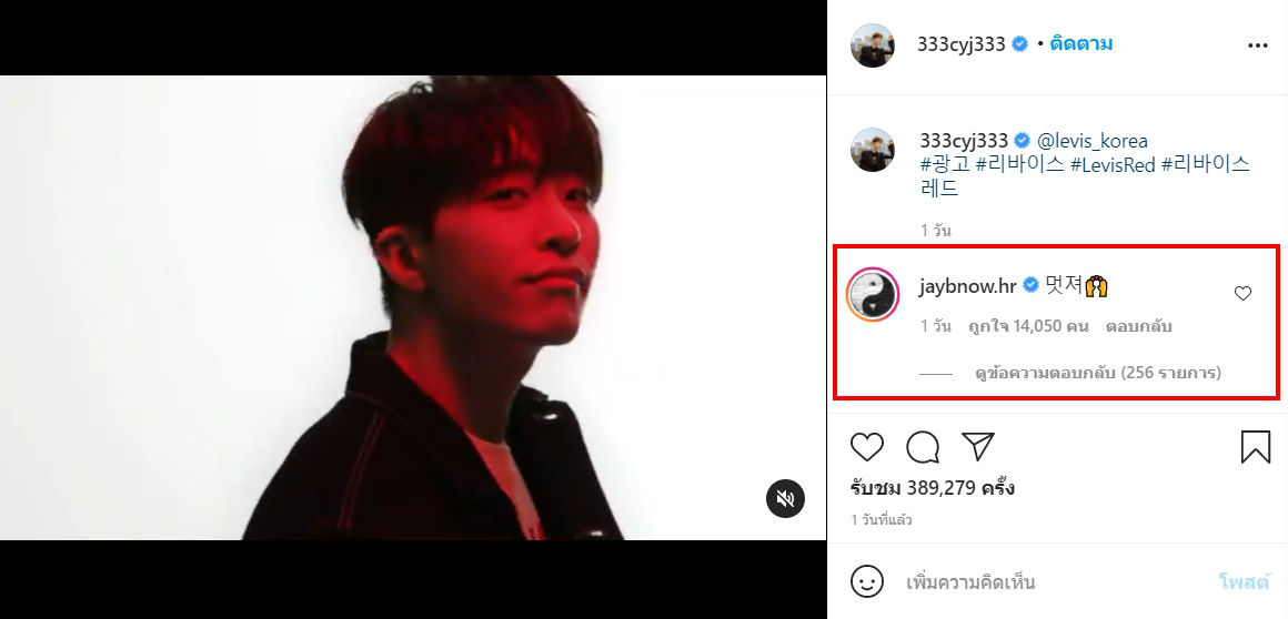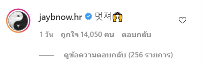 ทางด้านหนุ่มเจบีก็ไม่รอช้า ทันทีที่เห็นคลิปนี้ก็รีบปรี่เข้าไปคอมเมนต์อย่างไวแบบสั้นๆ แต่ได้ใจความว่า “เจ๋ง” เห็นแบบนี้ก็คงจะบ่งบอกได้อย่างดีเลยว่าพ่อคนเซ็กซี่เขาถูกอกถูกใจมากขนาดไหน แต่อันนี้ก็ไม่รู้เหมือนกันว่าถูกใจเสื้อผ้าสุดคูลหรือถูกใจความหล่อคูลของคุณนายแบบกันแน่