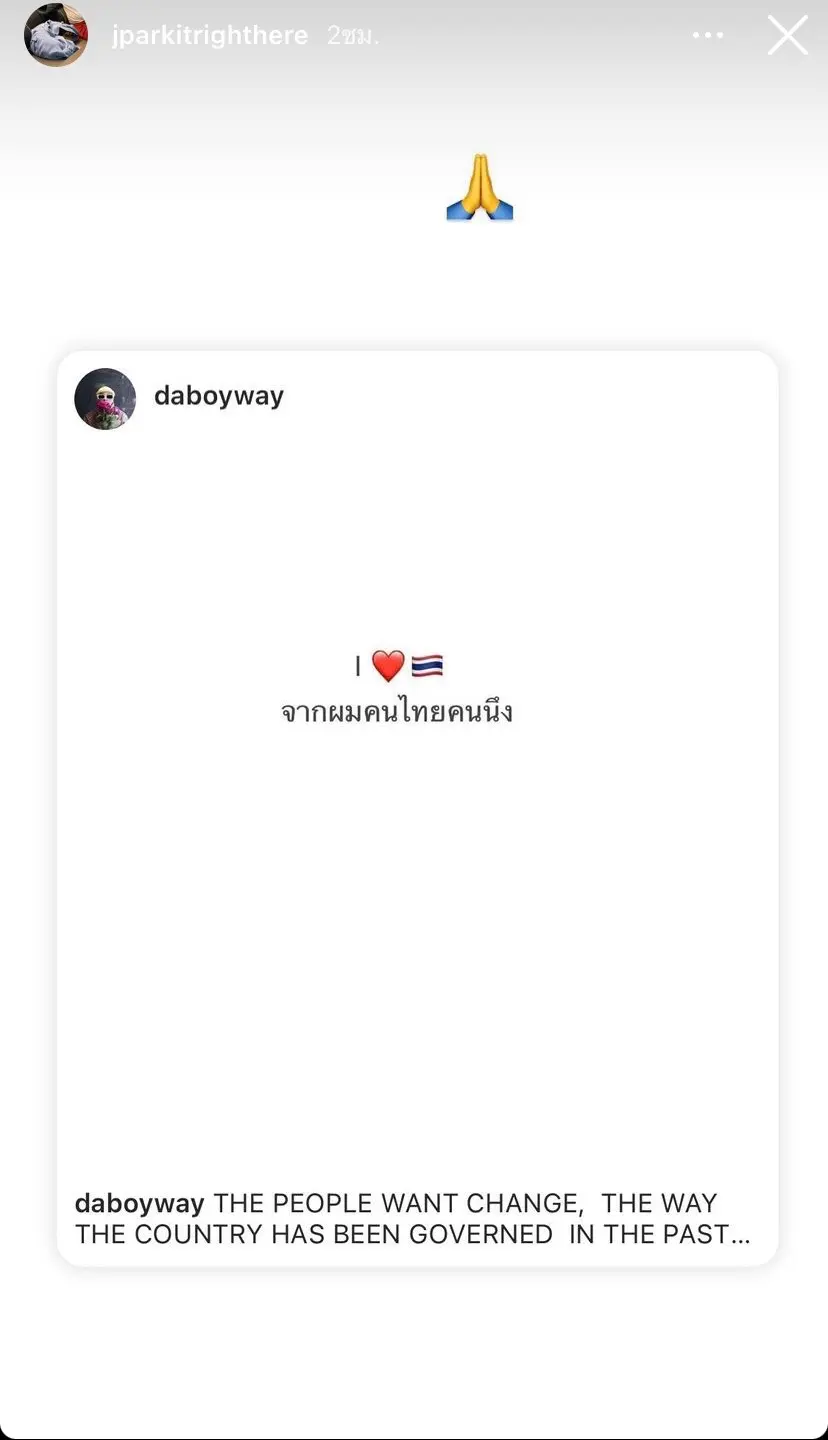Jay park ศิลปินเกาหลีชื่อดังออกมาแชร์โพสต์ของ เวย์ ไทเทเนี่ยม ใน Instagram หลังออกมาพูดถึงรัฐบาลไทย