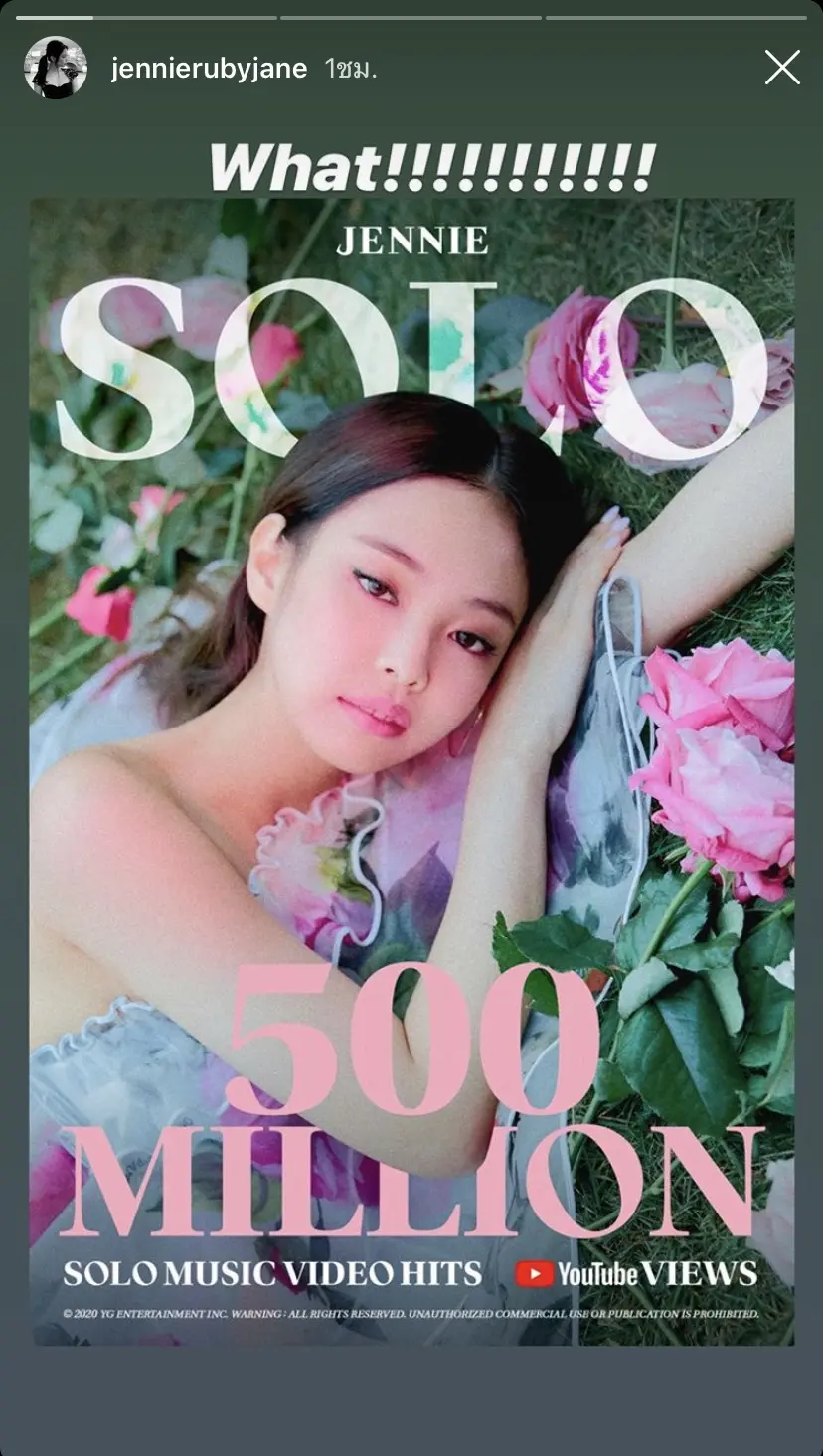 ซึ่งอัลบั้มเดี่ยวของเจนนี่ยังได้รับการยอมรับจาก RIAA Gold ประเทศสหรัฐอเมริกา ภายในเวลาไม่ถึงปีอีกด้วย ล่าสุด ต้องขอแสดงความยินดีกับเจนนี่ ที่ซิงเกิ้ล ‘SOLO’ คว้า 500 ล้านวิวแล้ว!!