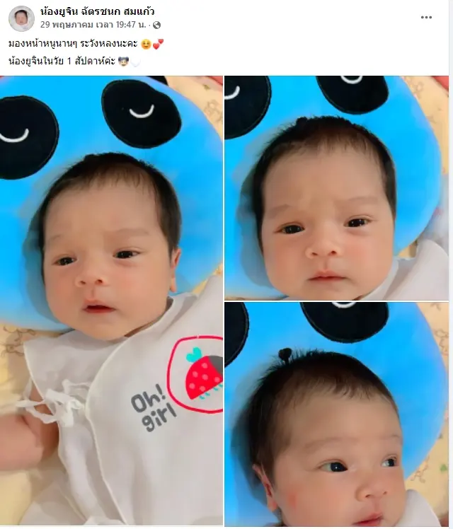 อีกทั้งด้านคุณพ่อคุณแม่ก็ยังเห่อลูกสาวไม่เบาเลยทีเดียว พร้อมกับออกมาเปิดภาพให้แฟน ๆ ได้ตามกันแบบทุกวันจนแฟนคลับถึงกับตกหลุมรักน้องยูจินกันเป็นแถว