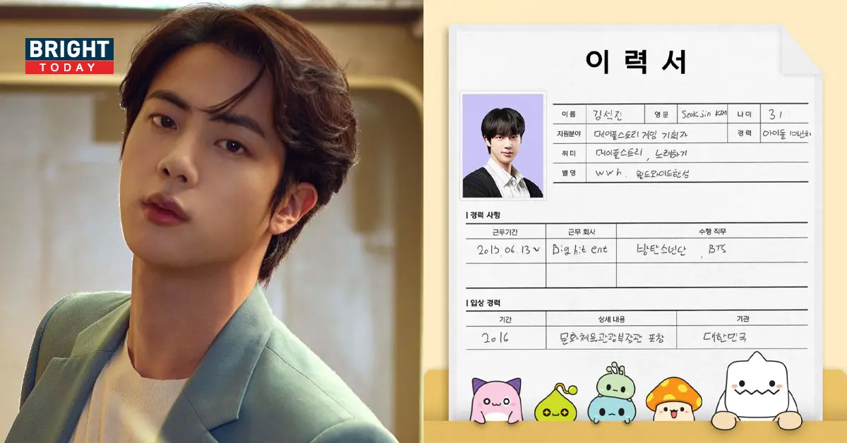 อย่างไรก็ตาม หากคุณเป็นดาราระดับโลก เรซูเม่อาจจะไม่ได้สำคัญเท่าไหร่นัก แต่เมื่อเร็ว ๆ นี้ จิน BTS ได้เปิดเผยประวัติของเขาผ่านเรซูเม่ซึ่งค่อนข้างน่าสนใจแต่ก็แฝงไปด้วยความตลกสไตล์เจ้าตัว