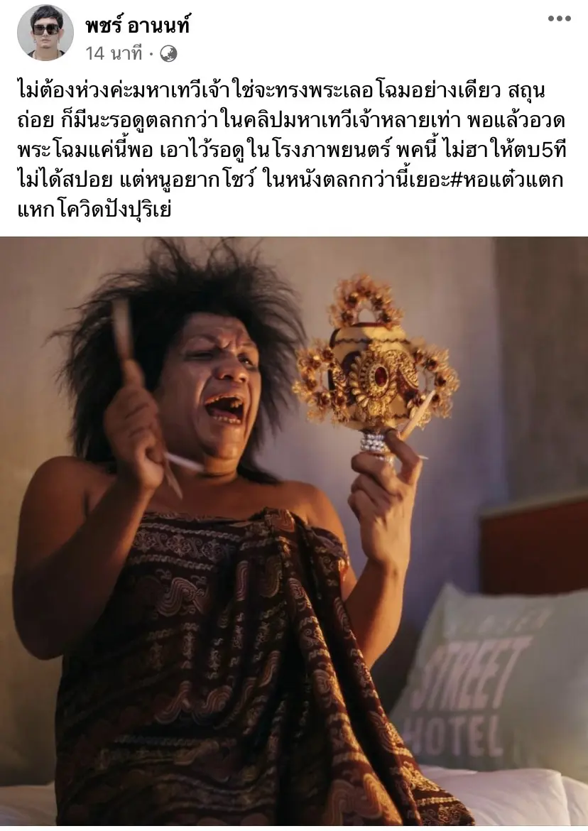 ล่าสุด เจ้าตัวได้มีการออกมาสปอยหนังบางส่วนเกี่ยวกับ พระมหาเทวีเจ้า ที่แฟนคลับหลายๆคนต่างรอคอย ว่า “ไม่ต้องห่วงค่ะ มหาเทวีเจ้าใช่จะทรงพระเลอโฉมอย่างเดียว สถุนถ่อย ก็มีนะ รอดูตลกกว่าในคลิปมหาเทวีเจ้าหลายเท่า พอแล้วอวดพระโฉมแค่นี้พอ เอาไว้รอดูในโรงภาพยนตร์ พฤษภาคมนี้ ไม่ฮาให้ตบ 5 ที ไม่ได้สปอย แต่หนูอยากโชว ในหนังตลกกว่านี้เยอะ #หอแต๋วแตก แหกโควิดปังปุริเย่”
