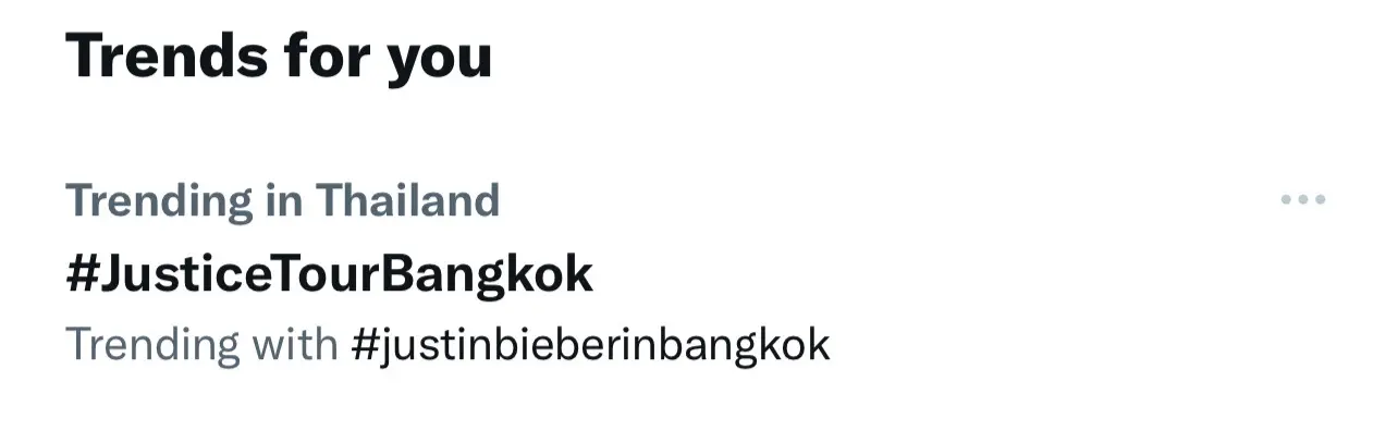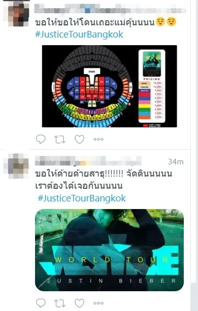 ล่าสุดหลังจากที่ราคาตั๋วคอนเสิร์ตออกมาประกาศได้ไม่นานเหล่าบรรดาแฟน ๆ ก็ได้ร่วมกันตั้งแฮชแท็ก #JusticeTourBangkok ซึ่งแฮชแท็กดังกล่าวนั้นก็ดังทะลุติดเทรนด์อันดับ 1 ไปเป็นที่เรียบร้อยแล้ว