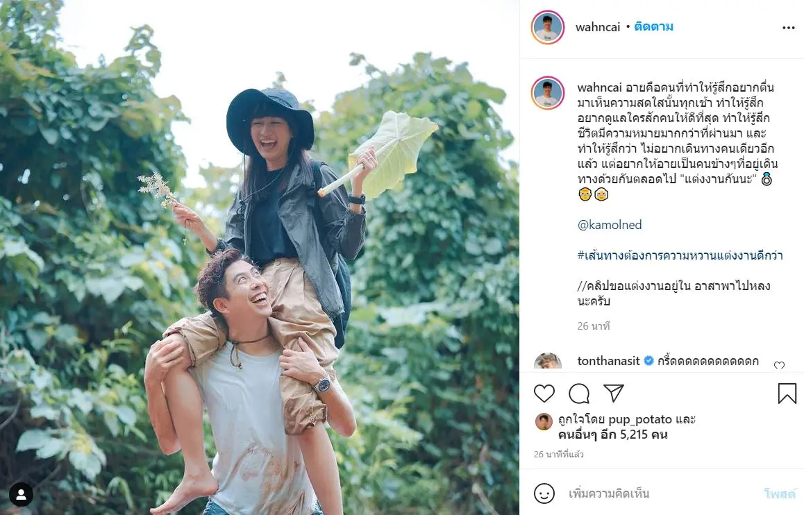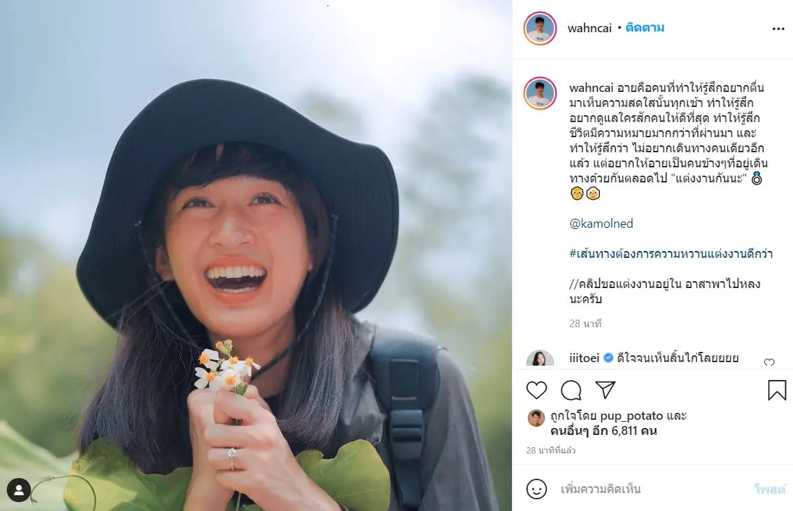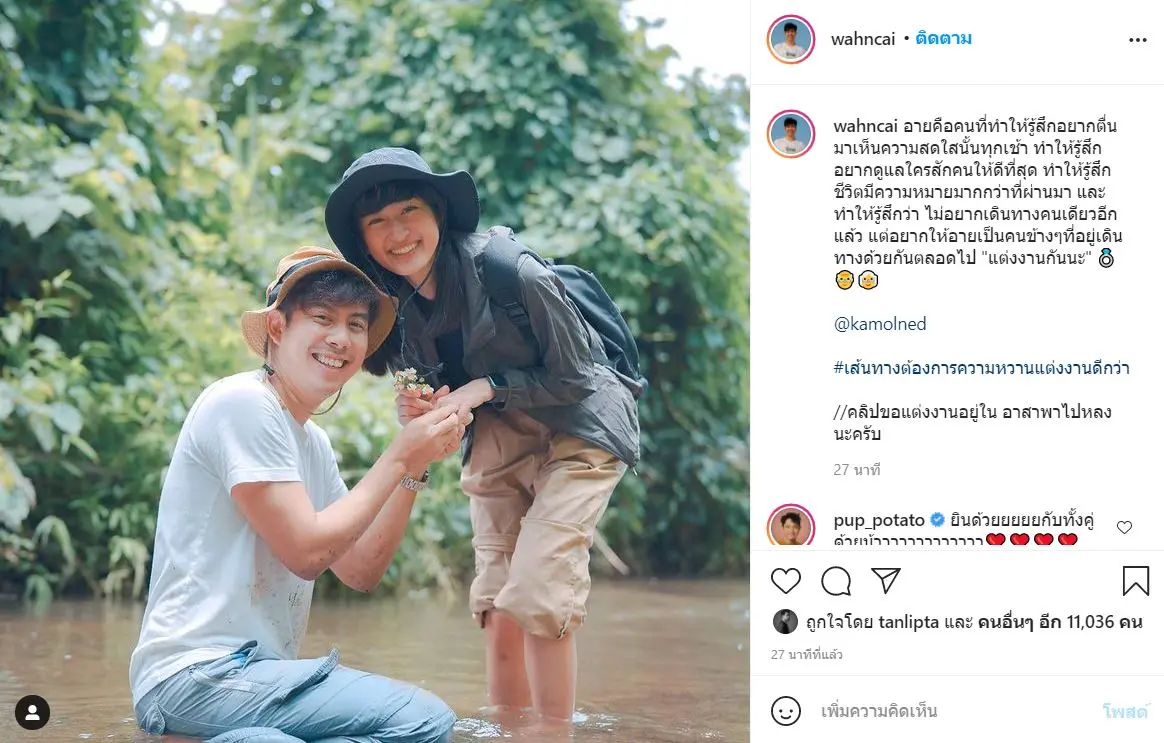 ว่านไฉ คุกเข่าขอ อาย กมลเนตร ขอแต่งงานแล้ว พร้อมเผยความในใจสุดซึ้ง ผ่านแคปชั่นตัวหนังสือ เส้นทางต้องการความหวานแต่งงานดีกว่า
