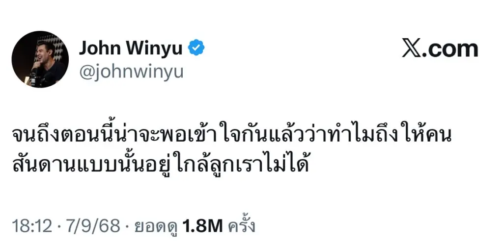 งานนี้ไม่ใช่แค่แฟนคลับของหมิวที่ลุกฮือ แต่ยังทำให้ จอห์น วิญญู ออกมาโพสต์ข้อความผ่าน X ตอกกลับแรงว่า