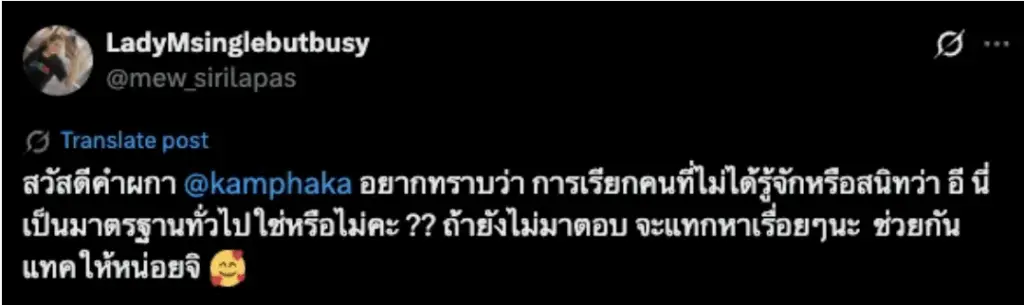 @kamphaka อยากทราบว่า การเรียกคนที่ไม่ได้รู้จักหรือสนิทว่า อี นี่เป็นมาตรฐานทั่วไปใช่หรือไม่คะ ?? ถ้ายังไม่มาตอบ จะแทกหาเรื่อยๆนะ ช่วยกันแทคให้หน่อยจิ”