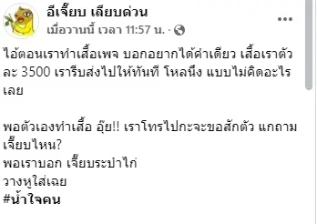 เมื่อวานนี้ทางด้านเพจดังอย่าง อีเจี๊ยบ เลียบด่วน ได้ออกมาโพสต์ข้อความถึง หนุ่ม กรรชัย พร้อมกับเสื้อรูปประจำเพจอีเจี๊ยบเลียบ ด่วน สีเหลือง ด้วยแคปชั่นชวนตอบโต้ไปอีกว่า ไอ้ตอนเราทำเสื้อเพจ บอกอยากได้คำเดียว เสื้อเราตัวละ 3500 เรารีบส่งไปให้ทันที โหลนึง แบบไม่คิดอะไรเลยพอตัวเองทำเสื้อ อุ๊ย!! เราโทรไปกะจะขอสักตัว แกถามเจี๊ยบไหน?พอเราบอก เจี๊ยบระบำไก่วางหูใส่เฉย #น้ำใจคน