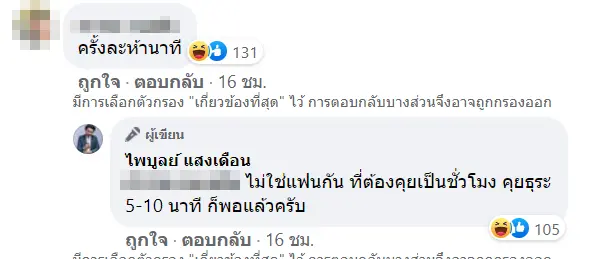 จนมีแฟนคลับเข้าไปให้กำลังใจ พร้อมทั้งต่อว่าคนที่ต้องการปล่อยข่าวปั่นกระแส แต่ก็มีชาวเน็ตที่เข้ามาสังเกตว่า การโทรคุยกันของทั้ง2คน เกิดขึ้นเพียงครั้งละ 5 นาทีเท่านั้น จนครูไพบูลย์ ก็เข้าตอบกลับว่า “ไม่ใช่แฟนกัน ที่ต้องคุยเป็นชั่วโมง คุยธุระ 5-10 นาที ก็พอแล้วครับ”