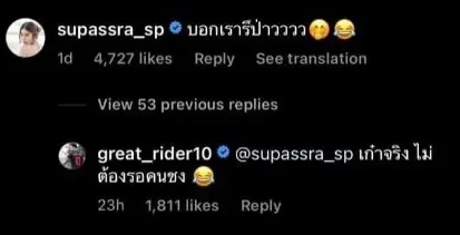 ล่าสุด เกรท วรินทร ก็ได้มีการเข้ามาคอมเมนต์ตอบกลับแล้วว่า เก๋าจริง ไม่ต้องรอคนชง พร้อมอิโมจิรูปขำน้ำตาเล็ด บอกเลยว่างานนี้มีเริ่มมีกลิ่นแล้วนะเอาดีๆ
