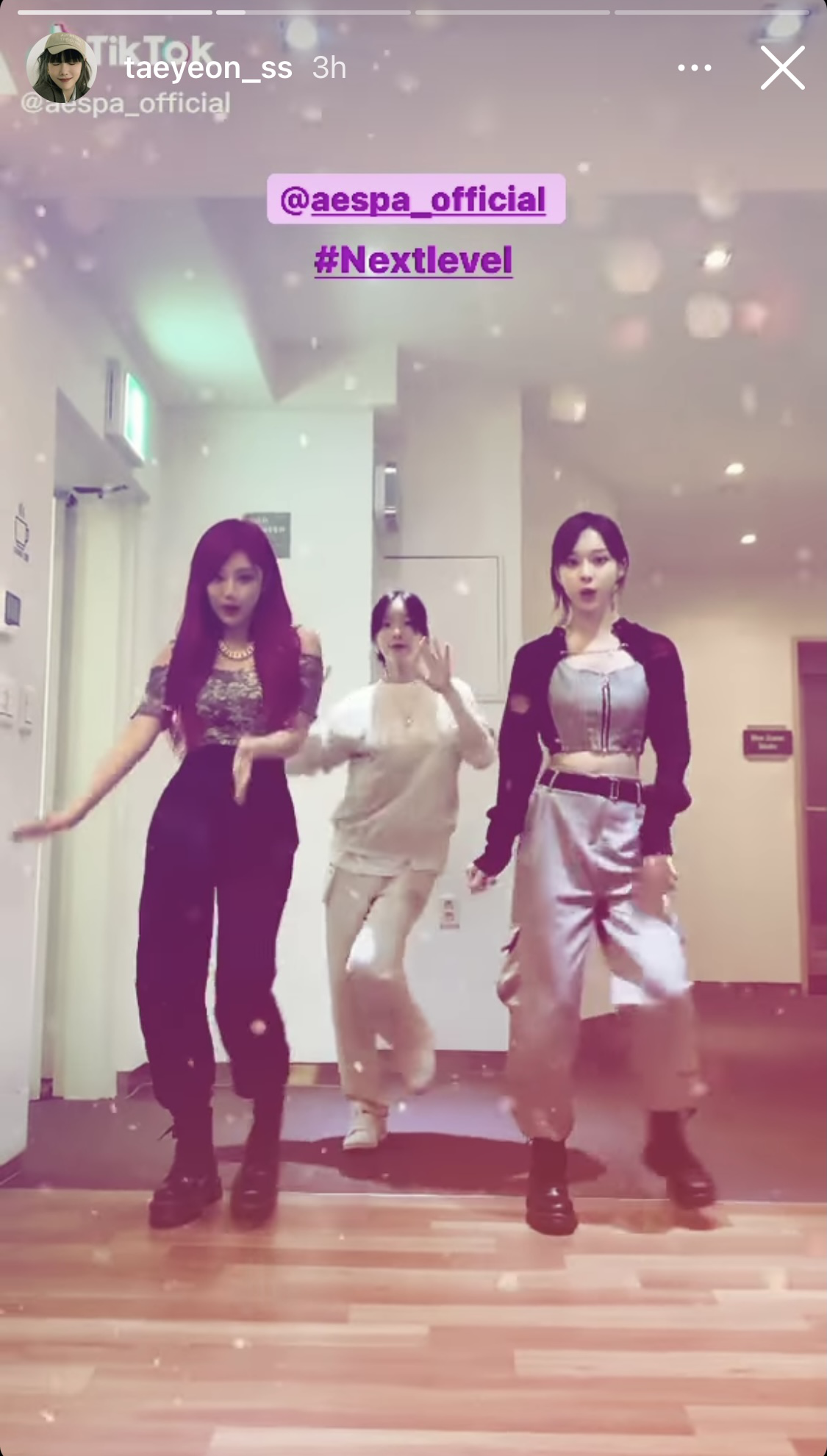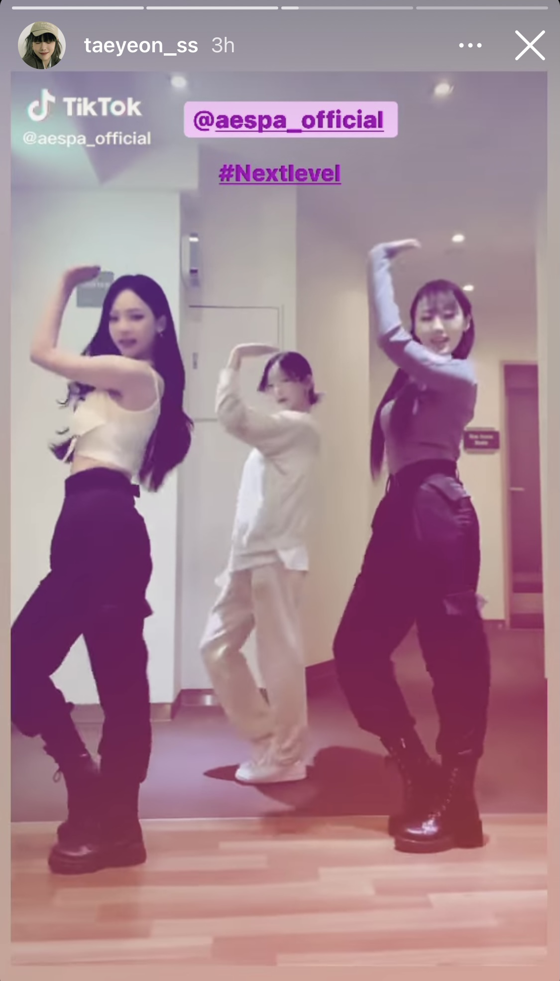 ไม่เพียงเท่านั้น แทยอนยังได้ลงคลิปเต้น Next Level พร้อมโพสต์ไอจีสตอรีด้วยแคปชัน “ช่วยมอบความรักให้กับ aespa กันเยอะๆ นะคะ”