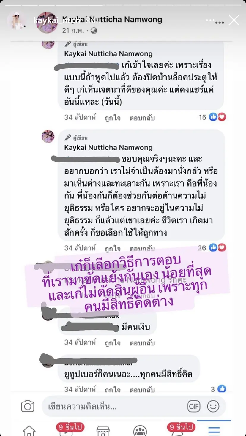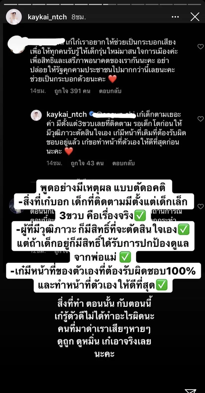 ทางด้านสาวเก๋ไก๋เข้าไปตอบคอมเมนต์ดังกล่าวว่า “เก๋เด็กตามเยอะค่า มีตั้งแต่ 3 ขวบ ที่ติดตาม รอเด็กโตก่อนให้มีวุฒิภาวะตัดสินใจเอง เก๋มีหน้าที่เดิมที่ต้องรับผิดชอบอยู่แล้ว เก๋ขิทำหน้าที่ตัวเองให้ดีที่สุดก่อนนะคะ”