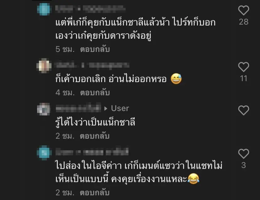 ซึ่งด้านฝ่ายชายก็ยังยืนยันอีกด้วยว่าเลิกจริง อีกทั้งยังแอบหลุดออกมาอีกด้วยว่าฝ่ายหญิงนั้นมีคนคุยแล้ว เป็นดารา งานนี้ชาวเน็ตเลยเดากันไปต่างๆนาๆ โดยพุ่งเป้ากันไปที่ แน็ก ชาลี นั่นเอง งานนี้จะจริงหรือมั่วก็ต้องติดตามดูกันต่อไป