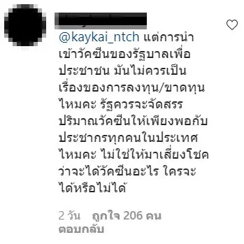 นอกเหนือจากนี้แล้ววส่วนใหญ่ชาวเน็ตก็จะเข้ามาถามแสดงความเป็นห่วงเเละขอให้สาวเก๋ไก๋ดูแลตัวเอง ปลอดภัยจากโควิค-19 พร้อมกับรอคลิปรีวิวการไปฉีดวัคซีนของเจ้าตัวในช่องทางยูทูปอีกด้วยจ้า