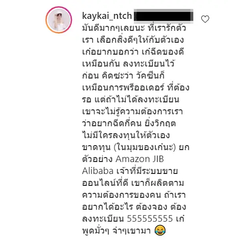เก๋ไก๋ สไลเดอร์ เจอคอมเม้นท์ถล่มหลังโพสต์ให้ทุกคนออกมาจองวัคซีนเพราะเราต้องรักตัวเอง เจอชาวเน็ตถามทำไมต้องเสียตัง ในเมื่อทุกคนเสียภาษีเหมือนกัน