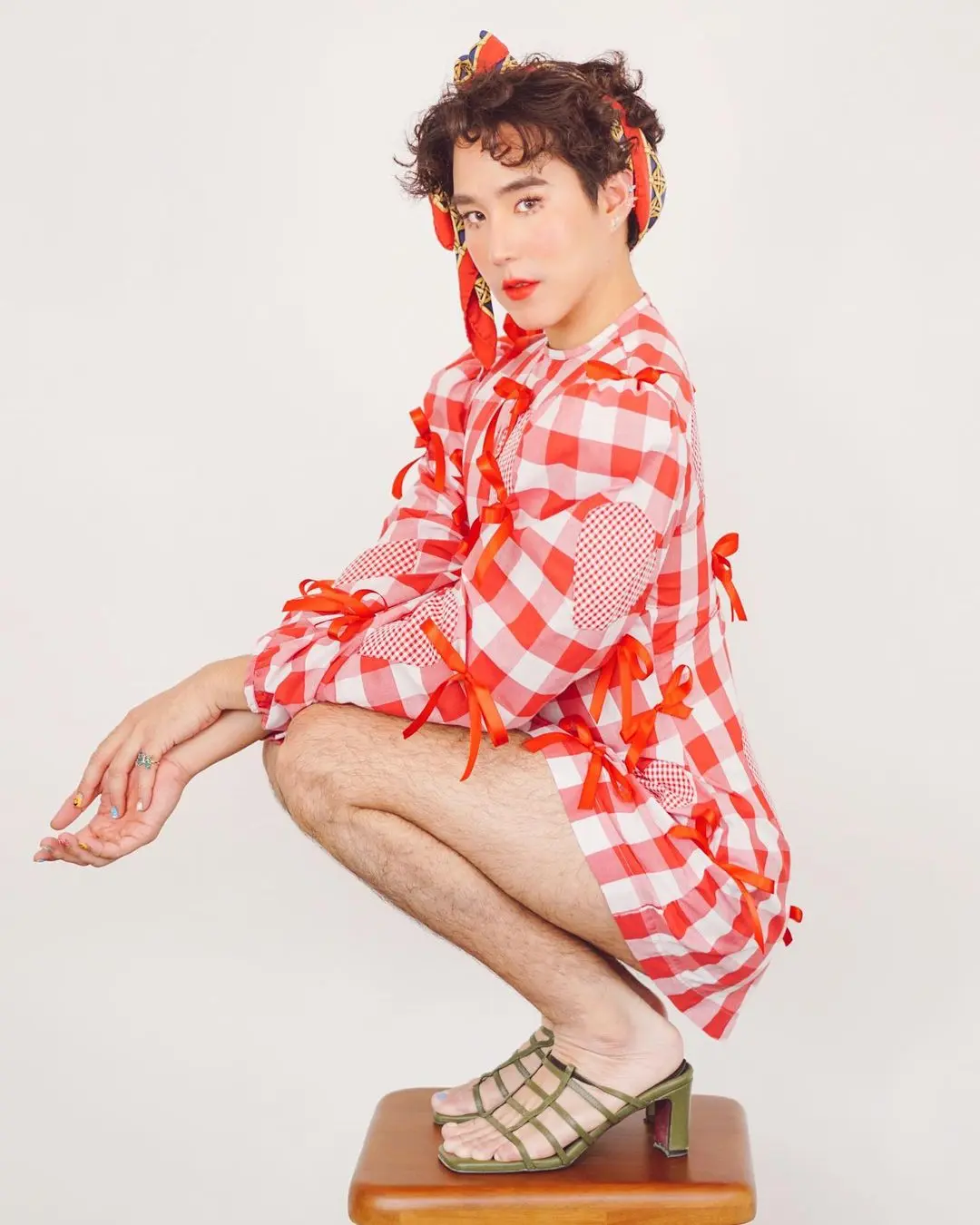 “ช่วงนี้หมวยไม่ได้ไปไหนเลยนะคะ เลยแต่งตัวWFHอยู่บ้านไปก่อนค่ะ หลายๆคนที่เขื่อนรู้จักมักถามเขื่อนว่าจะแต่งตัวไปไหน เขื่อนจะคอยตอบตลอดว่า “เขื่อนไม่ได้ไปไหนครับ เขื่อนแต่งตัวอยู่บ้าน เขื่อนแต่งตัวเพื่อตัวเอง แต่งเพราะเขื่อนอยากแต่งไม่ได้แต่งให้คนอื่น” เพราะฉะนั้นถ้าเพื่อนๆอยู่บ้านอยากแต่งตัวไปซื้อของหน้าปากซอย หรือไปซื้อก๋วยเตี๋ยว หรือ อยากแต่งแล้วลบออกเพราะสบายใจ เอาเลยค่ะ เขื่อนซับพอร์ต มนุษย์แต่ละคนมีวิธี self-care ต่างกัน เพราะฉะนั้นถ้าทำแล้วสบายใจตัวเราไม่ได้ไปเบียดเบียดใคร ก็เต็มที่เลยนะคะ เป็นกำลังใจกับพื้นที่ปลอดภัยให้ทุกๆคนนะคะ”