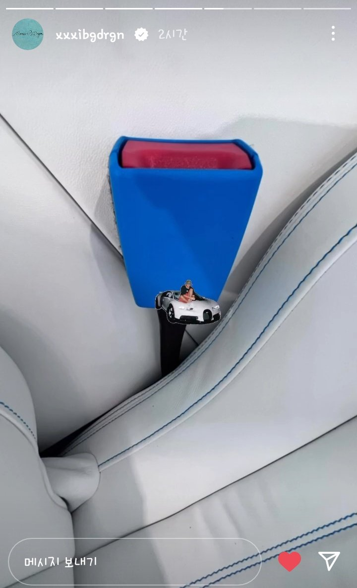 อันที่จริง มีเพียงสองคันเท่านั้นที่นำเข้ามาที่เกาหลี และหนึ่งในนั้นจดทะเบียนภายใต้ชื่อจีดราก้อน ไอดอลหนุ่มโพสต์ภาพเข็มขัดนิรภัยในรถ Bugatti Chiron พร้อมกับสติกเกอร์รูปรถเล็กๆ