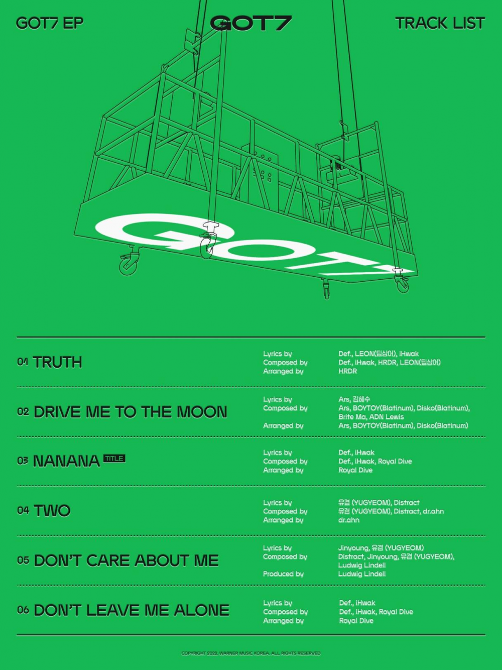 ล่าสุด GOT7 ก็ได้เปิดเผยรายชื่อเพลงในอัลบั้มใหม่ทั้งหมด 5 เพลง ซึ่งในนั้นก็มีเพลงที่เหล่าเมมเบอร์มีส่วนร่วมอยู่ด้วย การคัมแบ็คครั้งนี้ถือเป็นการคัมแบ็คของ GOT7 ในรอบ 1 ปี 3 เดือน นับตั้งแต่มีการเปิดตัวดิจิตอลซิงเกิลที่ 4 “Encore” เมื่อเดือนกุมภาพันธ์ปี 2021