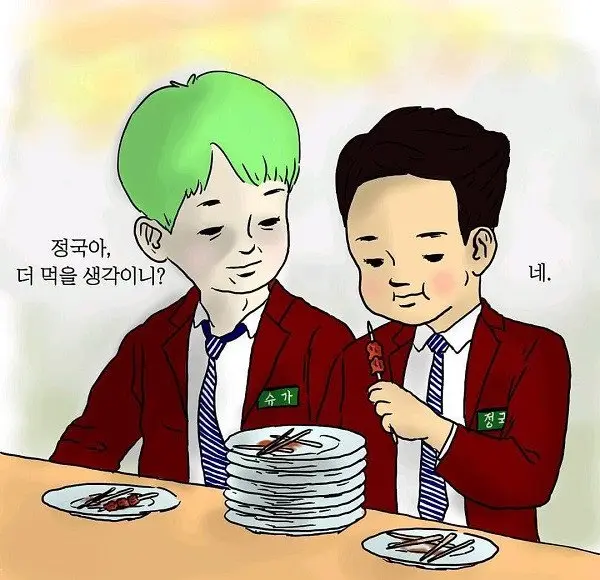 ชาวเน็ตกล่าวต่อว่า “ครอบครัวของจองกุกได้รับพรสวรรค์ ภาพวาดด้านล่างทั้งหมดวาดโดยพี่ชายของจองกุก เขาวาดภาพได้ดีมาก” ในที่นี้ ชาวเน็ตได้รวมภาพวาดของสมาชิก BTS หลายแบบที่วาดโดยพี่ชายของจองกุก!