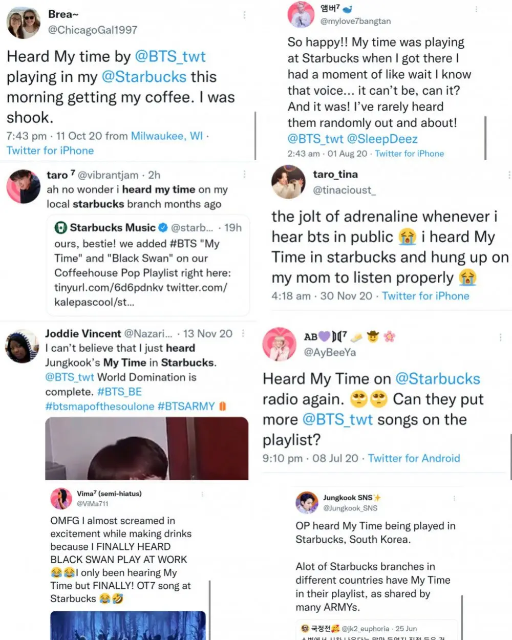 แฟนๆ ต่างตื่นเต้นเมื่อได้ยินว่า My Time กำลังเล่นอยู่ในสตาร์บัคส์สาขาต่างๆ ทั่วโลก และแบ่งปันความตื่นเต้นของพวกเขาบนโซเชียลมีเดีย