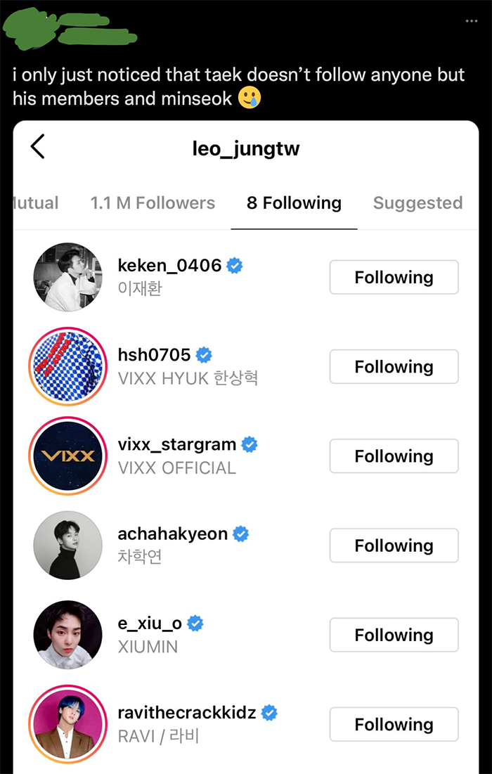 เลโอ ไม่กดติดตามใครบน Instagram นอกจากเมมเบอร์ของเขา และ ซิ่วหมิน