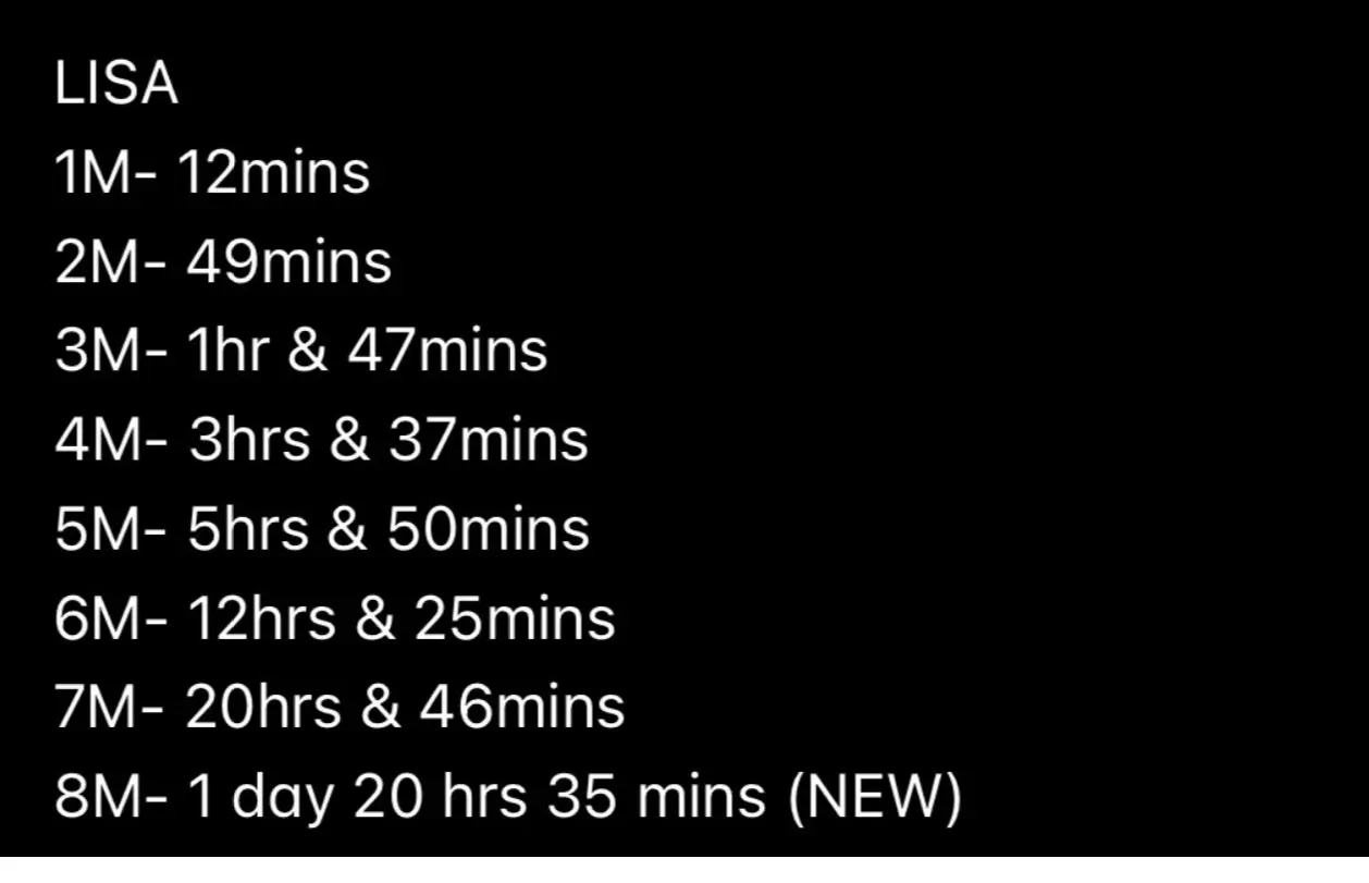 ลิซ่า BLACKPINK ทำลายสถิติยอดไลค์ 8 ล้านบน Instagram ได้เร็วที่สุด และปัจจุบันเธอยังเป็นศิลปินหญิงชาวเอเชียเพียงคนเดียวที่โพสต์หลายโพสต์ใน Instagram มียอดไลค์ถึง 8 ล้านไลค์