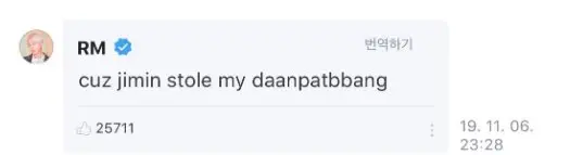 ไม่นานหลังจากนั้น RM ก็ได้โพสต์รูปของ daanpatbbang พร้อมแคปชั่นฮาๆ นี้