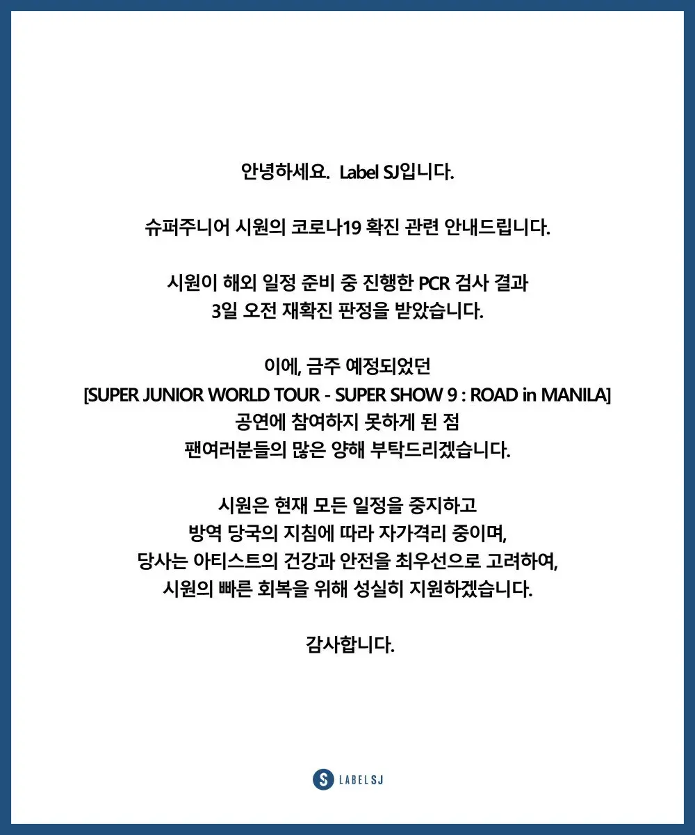 แถลงการณ์ของ Label SJ มีดังนี้:
