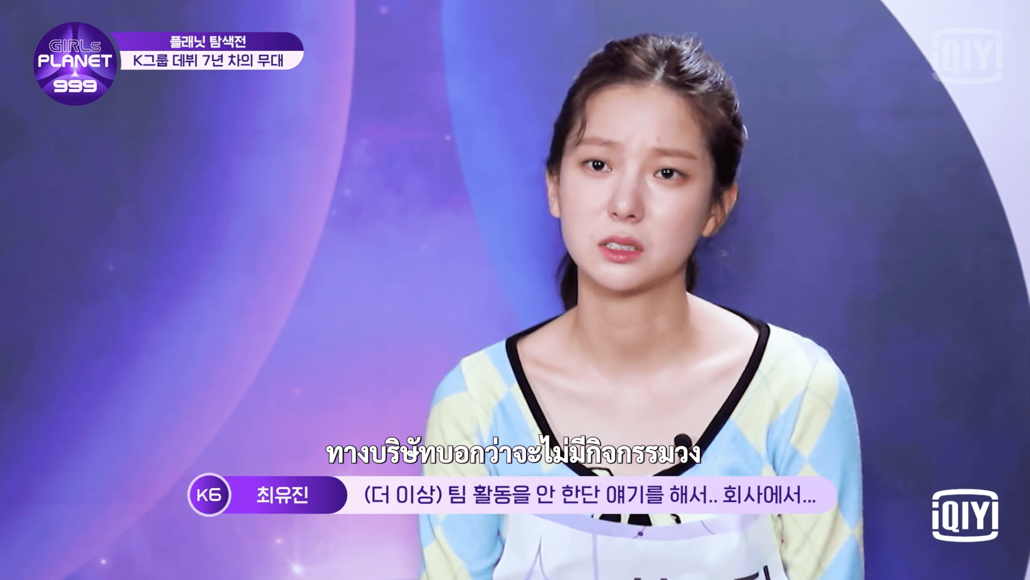 “ทางบริษัทบอกว่าจะไม่มีกิจกรรมของวง ฉันทุ่มเททั้งหมดให้กับวง CLC จริง ๆ ด้วยคอนเซปต์ของเราคือสาวแกร่ง ฉันเลยรู้สึกเหมือนไม่มีตัวตนบนเวทีค่ะ ฉันยังอยากเป็นนักร้องต่อไป เพราะแบบนั้นฉันจึงอยากใช้รายการ Girls Planet 999 แสดงเสน่ห์ของฉัน และด้านอื่นๆให้เห็นค่ะ แล้วฉันก็รู้ว่าฉันแสดงให้เห็นได้ค่ะ”