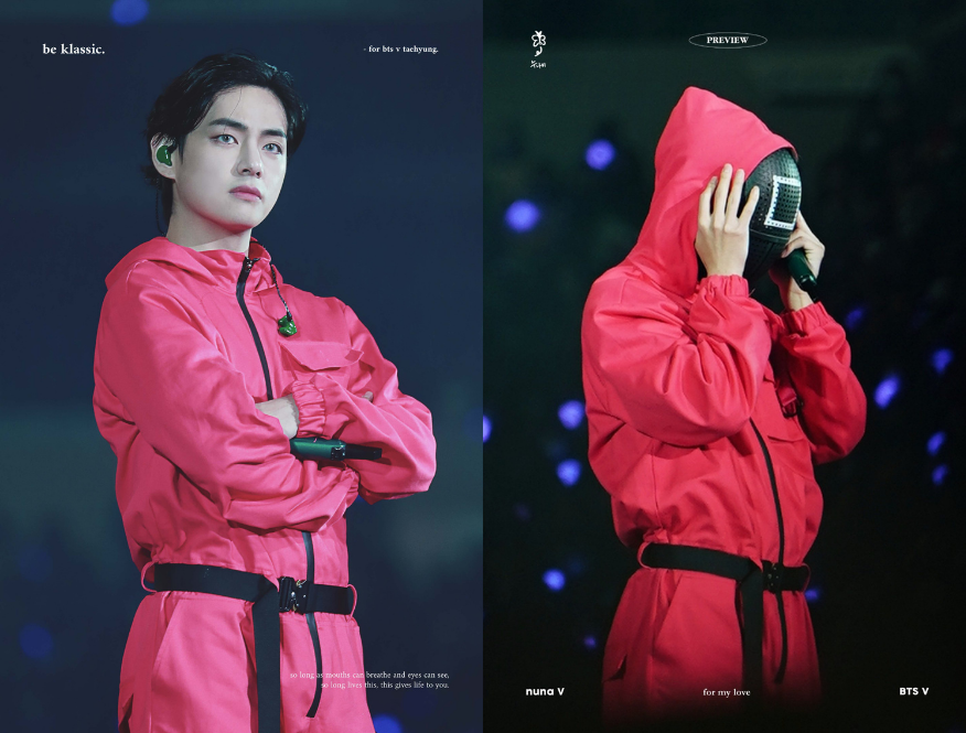 หลังจากแสดงได้อย่างยอดเยี่ยมในครึ่งแรกของคอนเสิร์ต แทฮยองก็เซอร์ไพรส์แฟนๆ ด้วยการแสดงในชุดผู้คุมสีแดงเต็มตัวจากซีรีส์ฮิตทาง Netflix ของเกาหลีเรื่อง ‘Squid Game’
