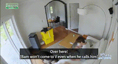 วีเอาแต่เรียกแบมไปหาเขา แต่แบมก็มองแต่เจ้าของของเขาเท่านั้น ทุกครั้งที่จองกุกเข้ามาในห้องหรือขยับตัวแม้เพียงเล็กน้อย แบมก็เดินไปหาเขาทันที
