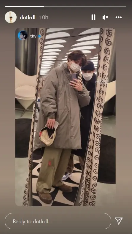 วี BTS ได้โพสต์ภาพกับคู่ชเวอูชิกในสตอรี่อินสตาแกรมของเขาในช่วงบ่ายของวันที่ 20 ธันวาคม ในภาพ ทั้งสองกำลังถ่ายเซลฟี่หน้ากระจกด้วยกัน และ ชเวอูชิก ได้อัปโหลดรูปภาพเดียวกันซ้ำบน SNS ของเขา