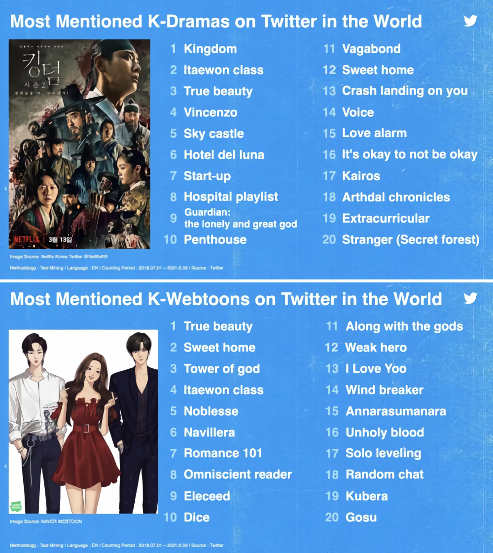 การวิเคราะห์ข้อมูลอย่างละเอียดของทวีตตั้งแต่เดือนกรกฎาคม 2018 ถึงมิถุนายน 2021 เปิดเผยว่า ‘Itaewon Class’ เป็นละครเกาหลีที่มีคนพูดถึงมากเป็นอันดับ 2 ของโลก รองจาก Kingdom