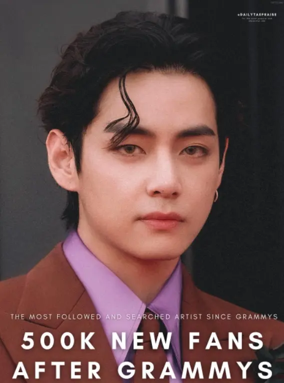 วี BTS มีผู้ติดตามในอินสตาแกรมเพิ่มขึ้นมากกว่า 500,000 คน ในเวลาเพียงสองวัน หลังกลายเป็นกระแสไวรัลที่งานแกรมมี่ปี 2022