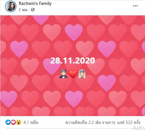ก้อย รัชวิน วงศ์วิริยะ เผยฤกษ์ดีกำหนดงานวิวาห์แล้ว หลังมีเหตุต้องเลื่อนจาก วันที่ 6 มิถุนายน 2563 แต่โดนพิษของโควิด 19 ทำให้ต้องเลื่อนไปก่อน