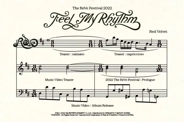 นอกจากนี้ ในตอนเย็นของวันที่ 6 มีนาคม Red Velvet ก็ได้กำหนดวันคัมแบ็คอย่างเป็นทางการด้วยการเปิดเผยกำหนดการคัมแบ็คของมินิอัลบั้ม ‘THE REVE FESTIVAL 2022 – FEEL MY RHYTHM’ เมื่อถอดรหัสคำตามตารางงาน ชาวเน็ตหลายคนคาดเดาว่าเกิร์ลกรุ๊ป SM จะปล่อยทีเซอร์ 2 ตัว โดยมี 2 คอนเซปต์คือ Red และ Velvet