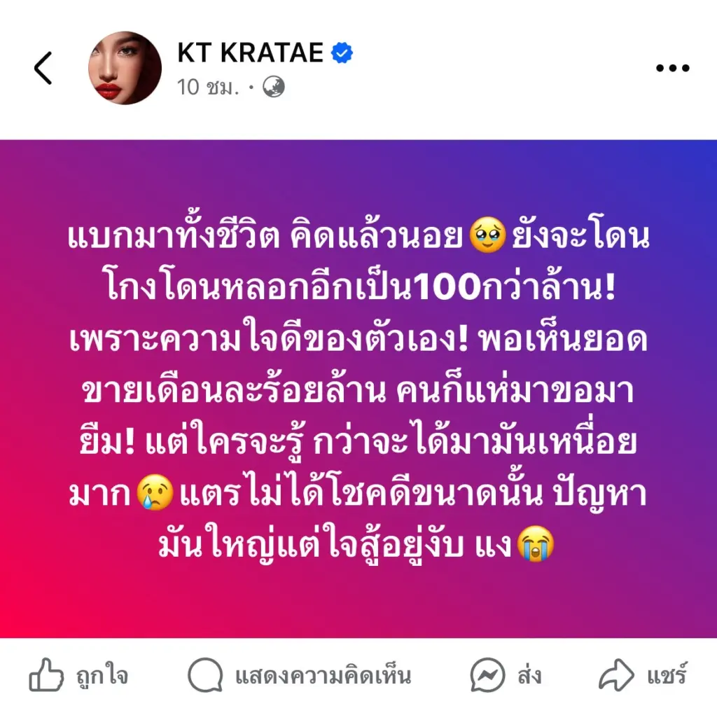 “พอเห็นยอดขายเดือนละร้อยล้าน คนก็แห่มาขอมายืม! แต่ใครจะรู้…กว่าจะได้มามันเหนื่อยมาก แตรไม่ได้โชคดีขนาดนั้น ปัญหามันใหญ่แต่ใจสู้อยู่งับ แง”