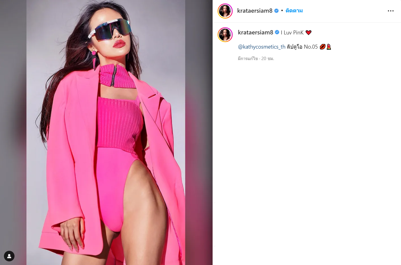 แต่ล่าสุด ลูกทุ่งสาว กระแต อาร์สยาม ก็ได้โชว์ความเป็น กระแตสวยแซ่บ ผ่านชุดบอดี้สูทสีชมพูหวานจับใจให้แฟน ๆ ได้รุมกดไลก์จนไอจีแทบแตก นอกจากนี้เธอยังเผยความรู้สึกในใจที่มีต่อชุดนี้ผ่านแคปชันอีกด้วยว่า “I Luv Pink”