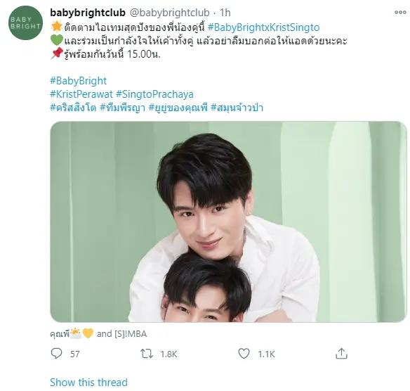 เรียกว่าเป็นพรีเซนเตอร์สามปีซ้อนแล้ว กับสองหนุ่มสุดปัง คริส-สิงโต ที่ล่าสุด ทางแบรนด์เครื่องสำอาง สกินแคร์ Baby Bright ก็ได้เปิดเผยแล้วว่าพรีเซนเตอร์ 2 หนุ่มหล่อก็คือคริส-สิงโต นั่นเอง