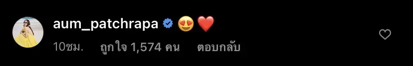 นอกจากนี้ ซุปตาร์ตัวแม่อย่าง อั้ม พัชราภา ยังได้มีการเข้ามาคอมเมนต์ด้วยเช่นกันว่า “?❤️”