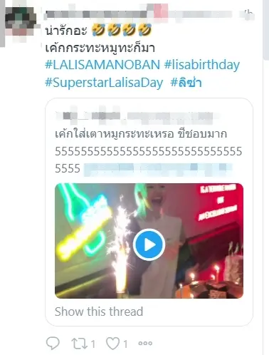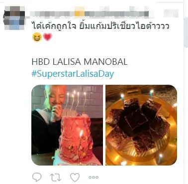 ขณะเดียวกันอีกหนึ่งปรากฏการณ์ที่จะไม่พูดถึงก็ไม่ได้กับเซอร์ไพรส์สุดพิเศษจากเพื่อน ๆ ของเธอ ที่ทำเอา ลิซ่า ถึงกับเสียอาการแทบไม่น้อย หลังได้เห็นกับเค้กหน้าตาสุดแปลกไม่ซ้ำใครแต่ถูกใจเธอเป็นอย่างมาก ซึ่งเค้กดังกล่าวนั้นก็คือ บราวนี่ ที่อยู่บน เตากระทะของหมูกระทะนั่งเอง