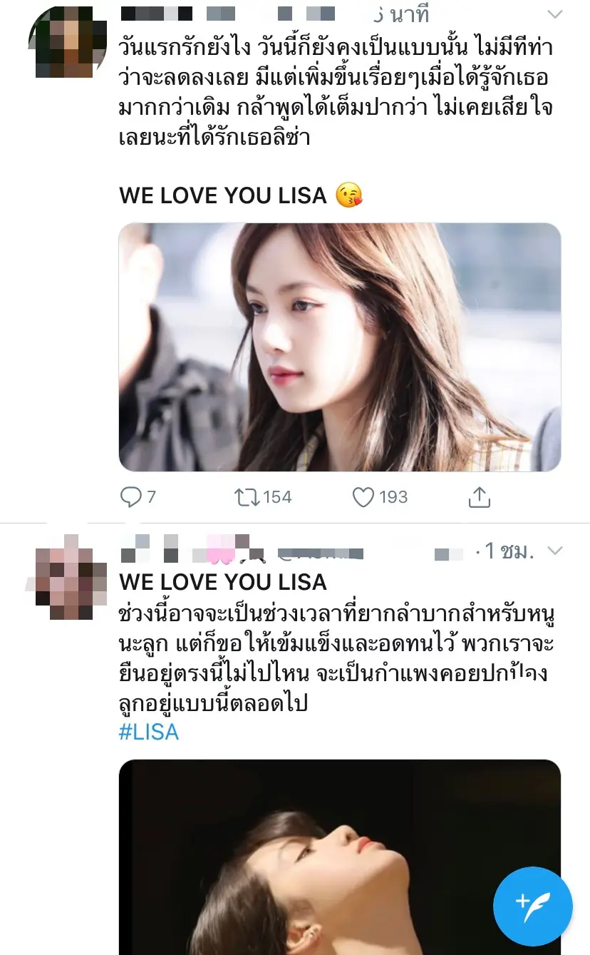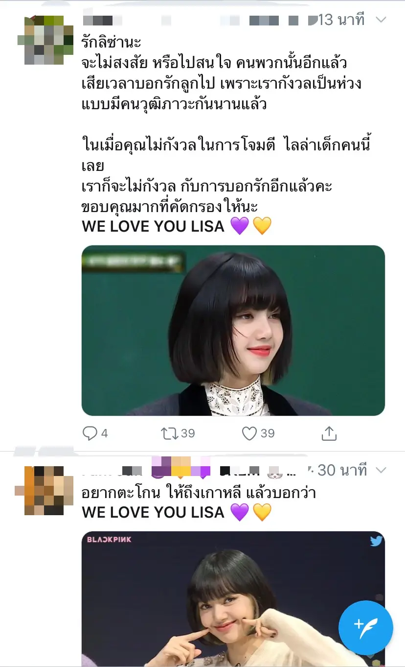 และล่าสุดทางด้านเหล่าแฟนคลับของลิซ่าก็ได้ออกมาโพสต์ข้อความเพื่อส่งกำลังใจให้กับลิซ่า พร้อมออกมาปกป้องและบอกว่าจะซัพพอร์ตต่อไปผ่านแท็ก “WE LOVE YOU LISA” เรียกได้ว่าเป็นอีกหนึ่งความน่ารักของแฟนคลับที่มีต่อลิซ่าเป็นอย่างมาก