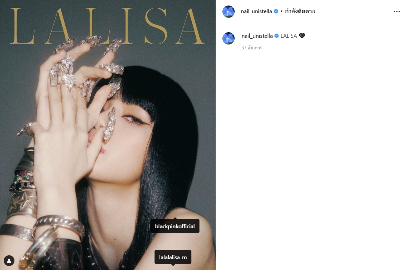ลิซ่า BLACKPINK อวดเล็บลายใหม่ผ่านทางไอจีสตอรี่ ก่อนแท็กชื่อร้านประจำที่ใช้บริการบ่อย ๆ โดยเฉพาะช่วงคัมแบ็ก หรือกำลังจะมีข่าวดี?
