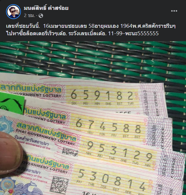 ‘เลขที่ชอบวันนี้ 16 เมษายน ชอบเลข 58 อายุผมเอง