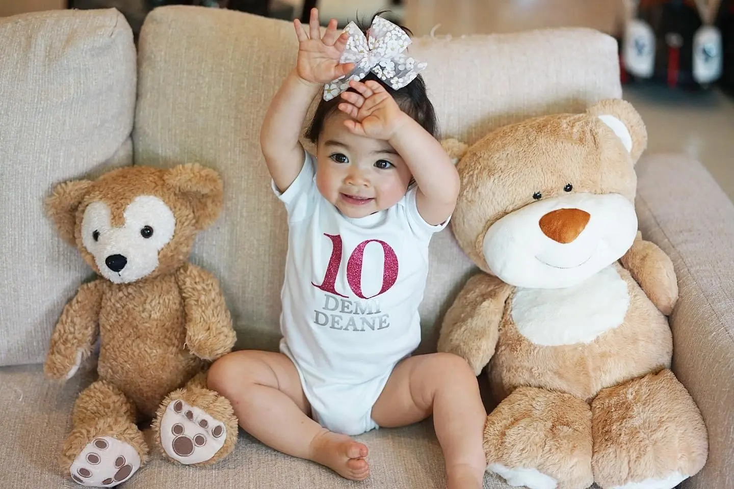 ลีเดีย ศรัณย์รัชต์ โพสต์ภาพสุดน่ารัก น้องเดมี่ ใส่เสื้อสกรีน “10 DEMI DEANE” ผ่านเพจเฟซบุ๊ก Lydia Sarunrat Deane พร้อมแคปชั่น “10 months old today! หนูอายุครบ 10 เดือนแล้วค่ะ ? #เด็กหญิงแป๋วแหวว #DailyDoseofDemiDeane”