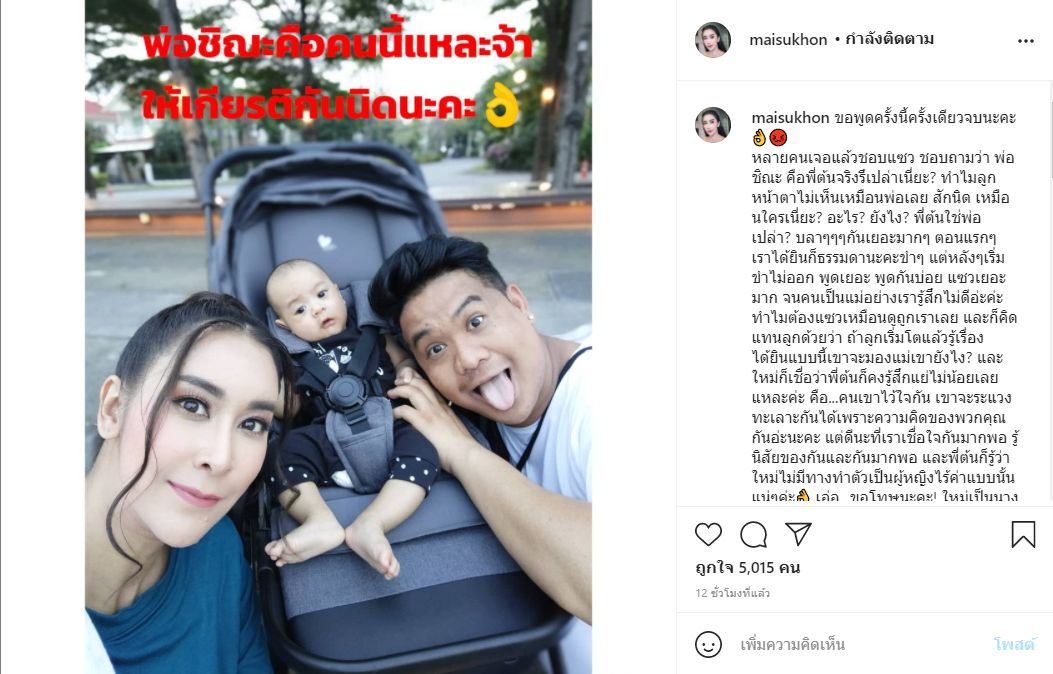 งานนี้ถึงกับต้องโพสต์ภาพครอบครัวพ่อแม่ลูก พร้อมเขียนในภาพว่า ‘พ่อชิณะคือคนนี้แหละจ้า ให้เกียรติกันนิดนะคะ’ กับแคปชั่น