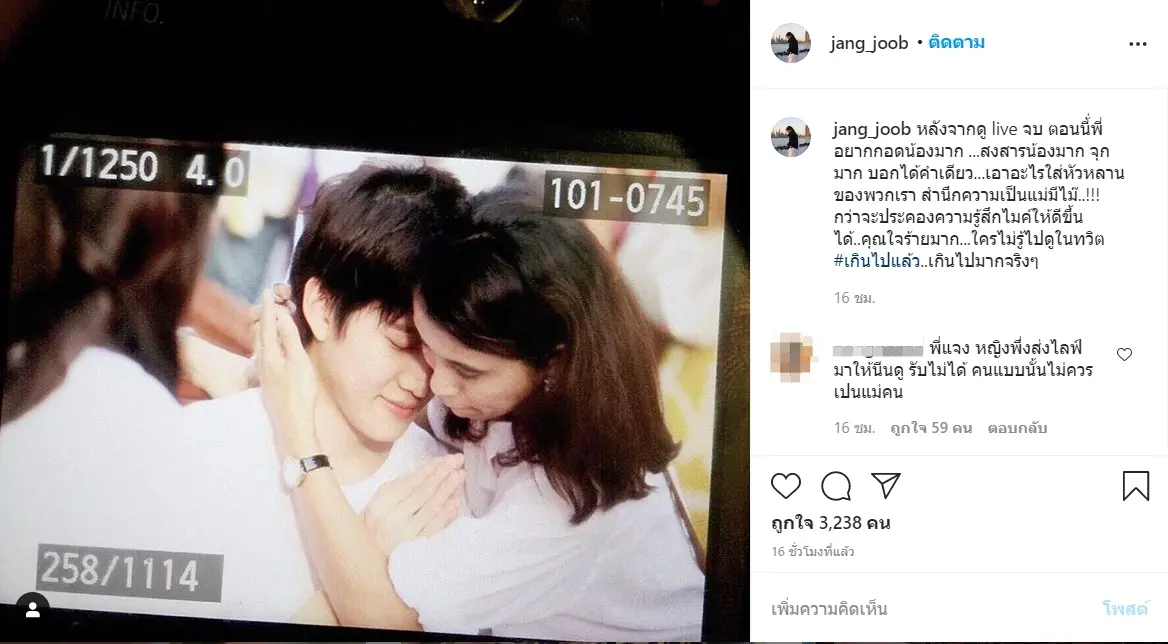 “หลังจากดู live จบ ตอนนี้พี่อยากกอดน้องมาก สงสารน้องมาก ตุกมาก บอกได้คำเดียว เอาอะไรใส่หัวหลานของพวกเรา สำนึกความเป็นแม่มีไหม กว่าจะประคองความรู้สึกไมค์ให้ดีขึ้นได้ คุณใจร้ายมาก ใครไม่รู้ไปดูในทวิตเตอร์ เกินไปแล้ว เกินไปมากจริงๆ”